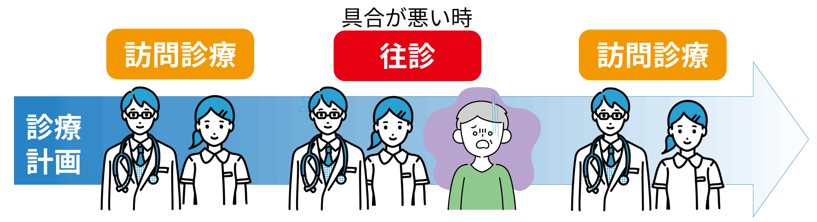 あらかじめ立てられた診療計画に基づいて、定期的(原則月2回)に医師が患者様のご自宅にお伺いする診療のことを指します。