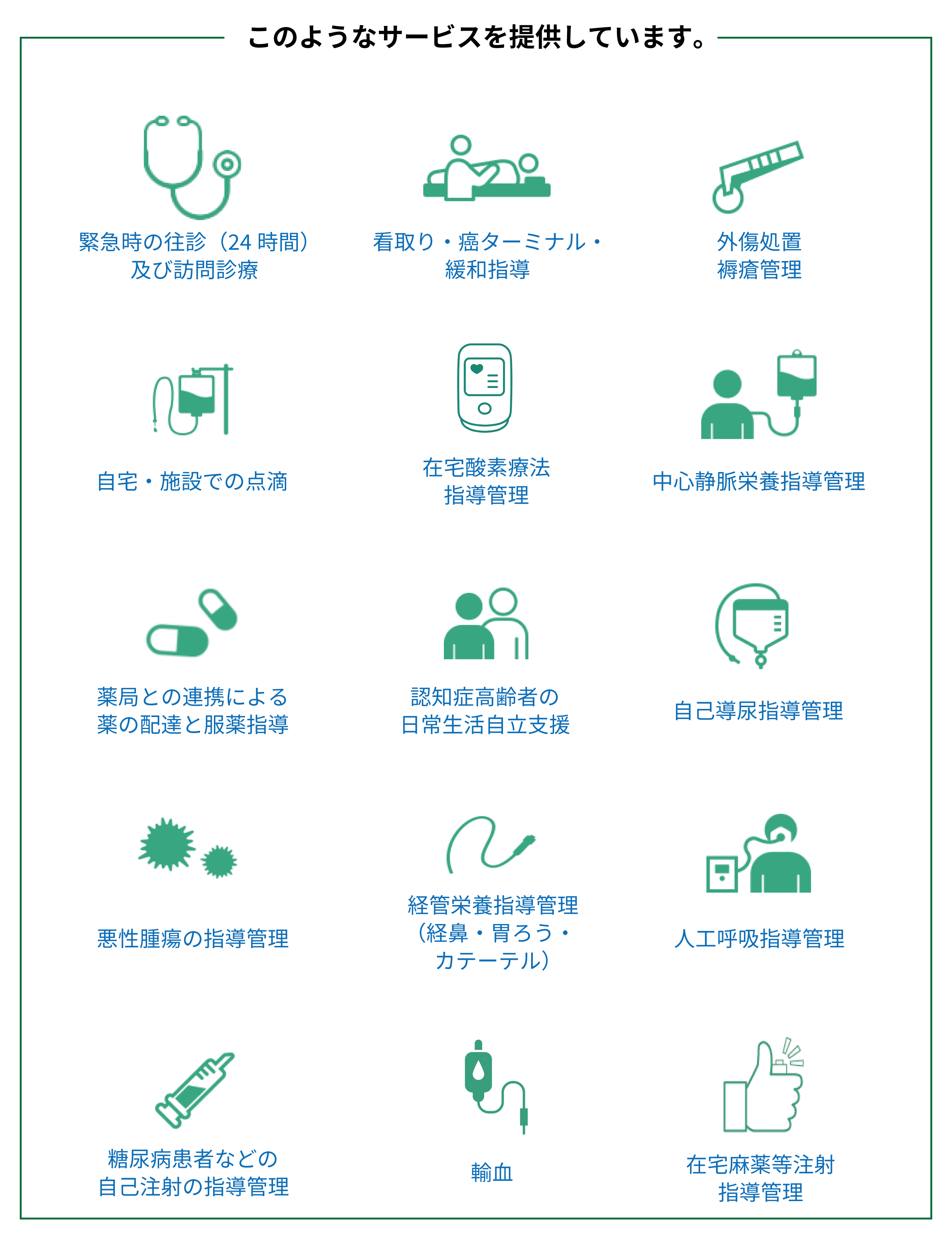 「訪問診療」でお申込みいただきますようお願いいたします。